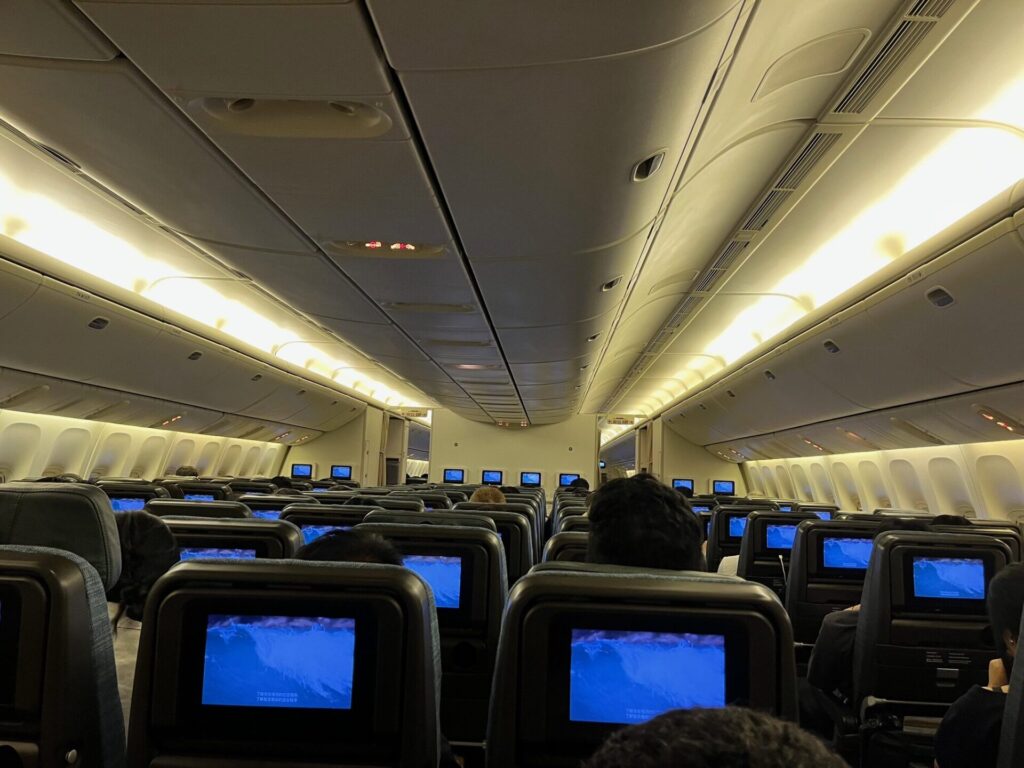 みんなが不安な機内です。