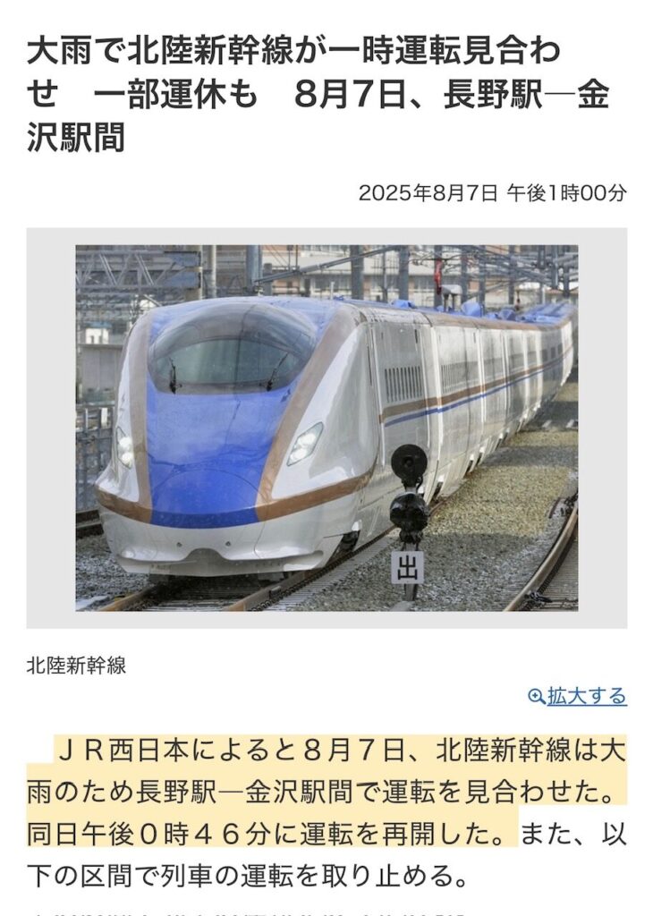 前日には、豪雨で新幹線が止まりましたが、その日のうちに復旧したので、一同、胸をなでおろしました。