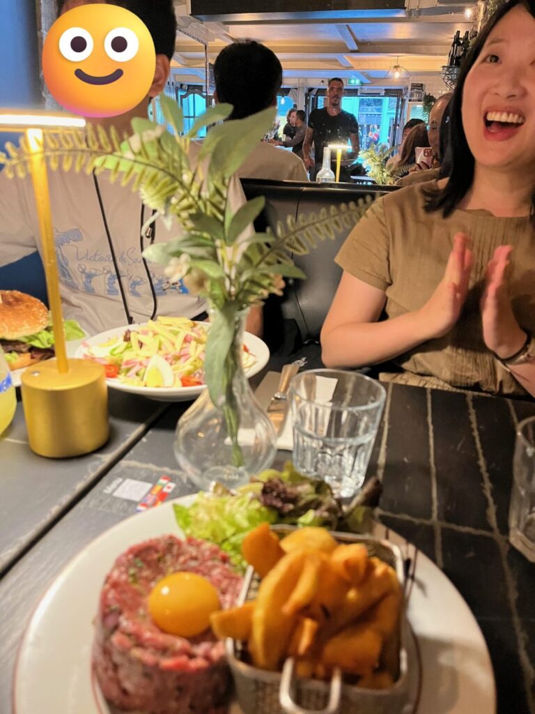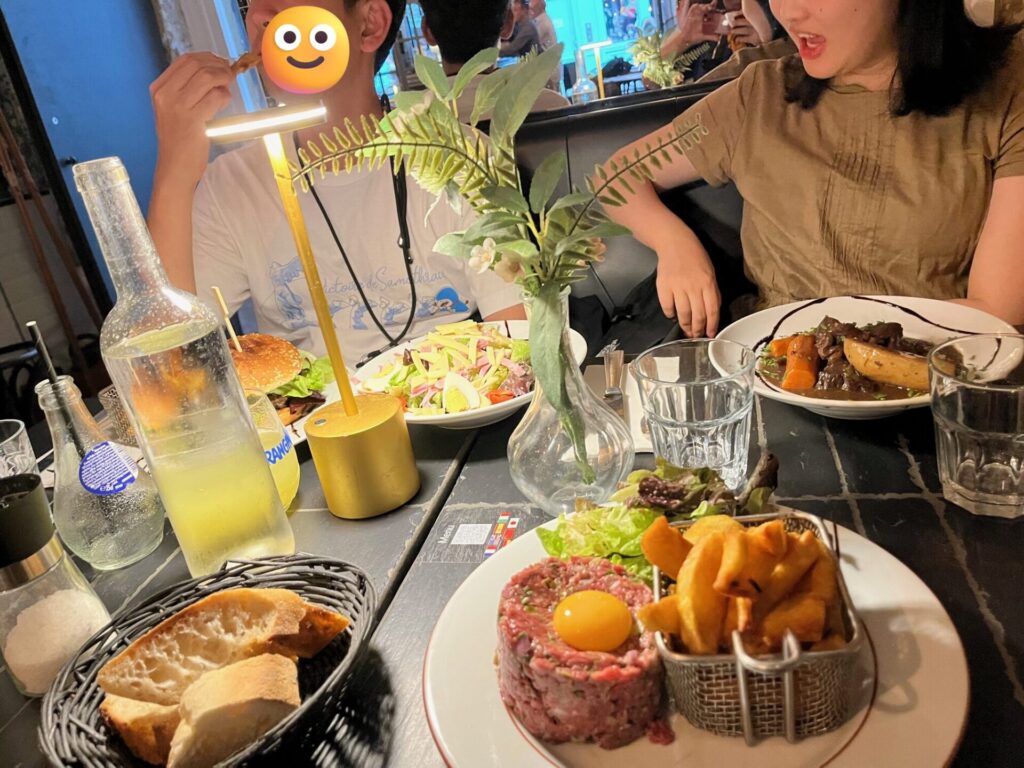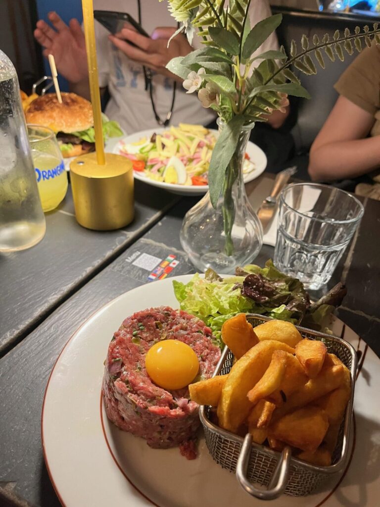 生の牛肉を細かく刻んでオリーブオイルやスパイス、刻み玉ねぎ、卵黄などとよく混ぜて食べるフランス料理です。