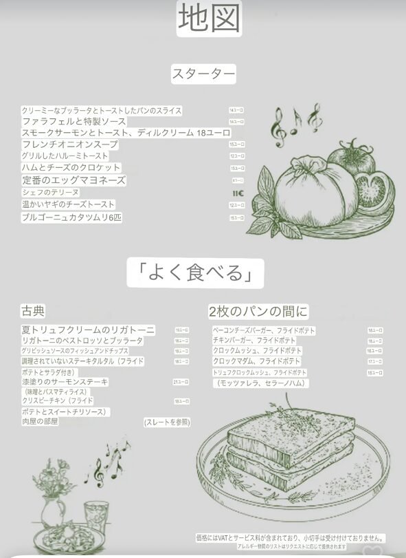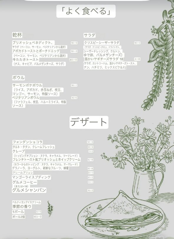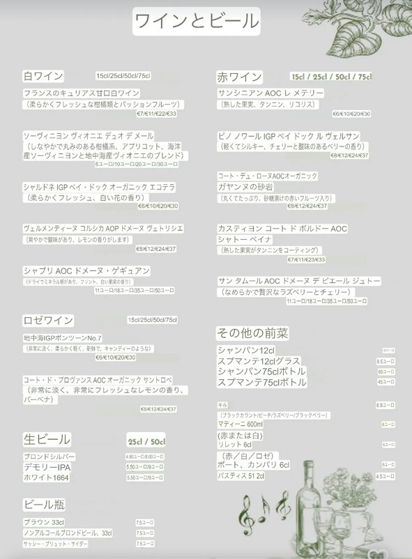 もちろん、メニューはフランス語ですが、翻訳アプリを当てると日本語が出て来るので大体のイメージはつかめます。