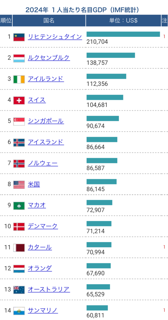 どちらにせよ、国民一人一人が非常に裕福な国と言っていいと思います。