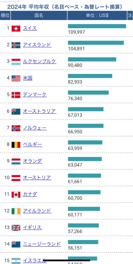 日本の約2.3倍の平均年収ですから、その高額ぶりが分かると思います。