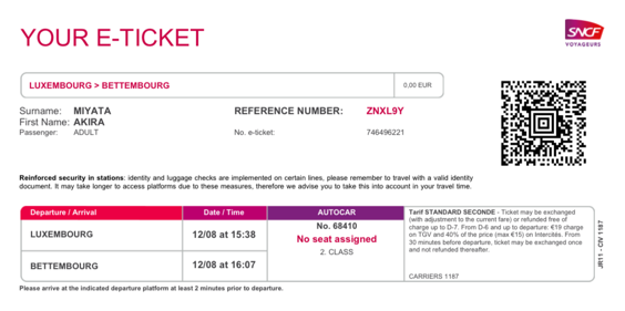 チケット通り15時38分発のベッテンブルグ行きのバスに乗り、ルクセンブルグ駅前を出発しました。