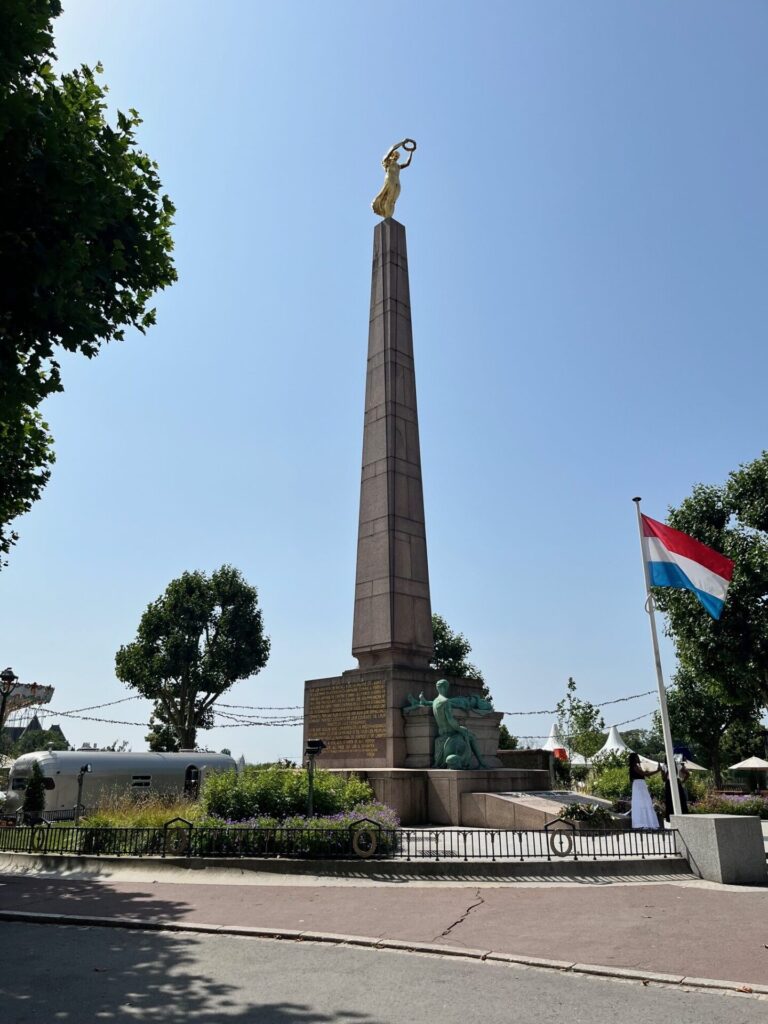 その記念碑のてっぺんには、黄金の女性像が立っています。