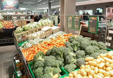 野菜や果物、生鮮食料品などがある本格的なスーパーです。