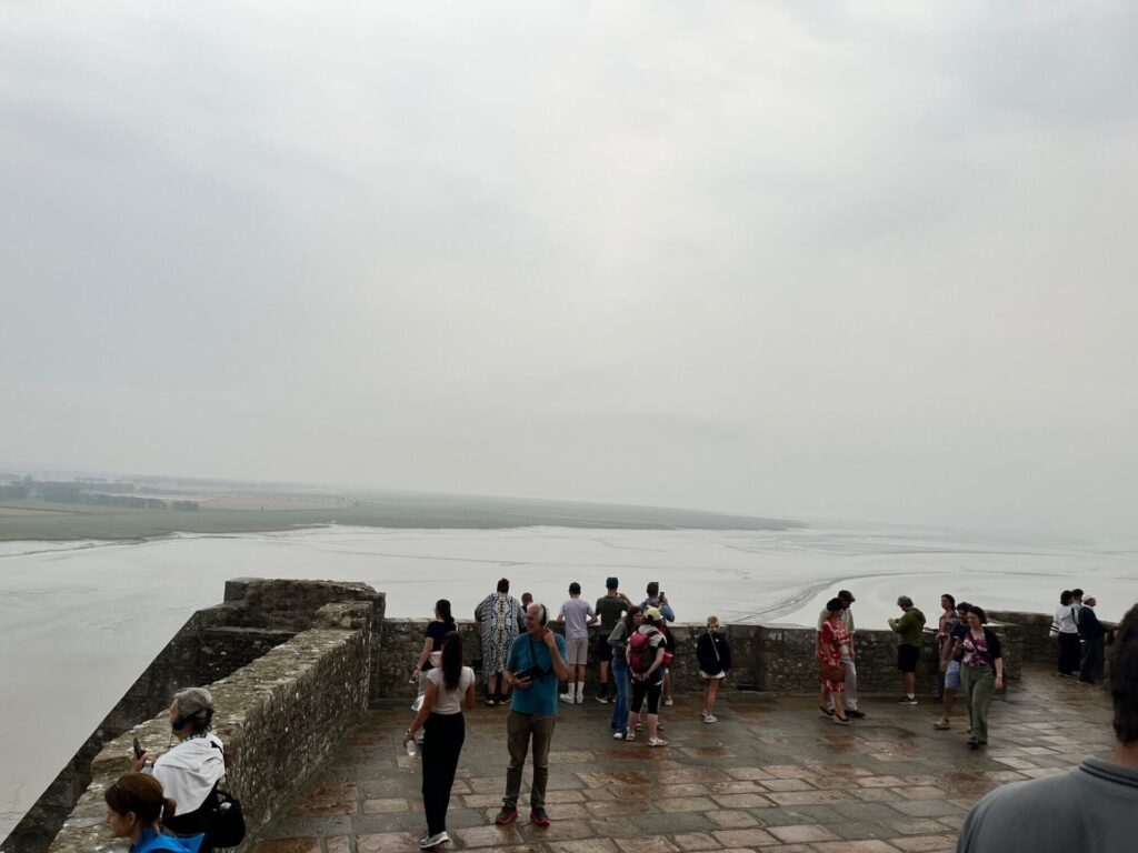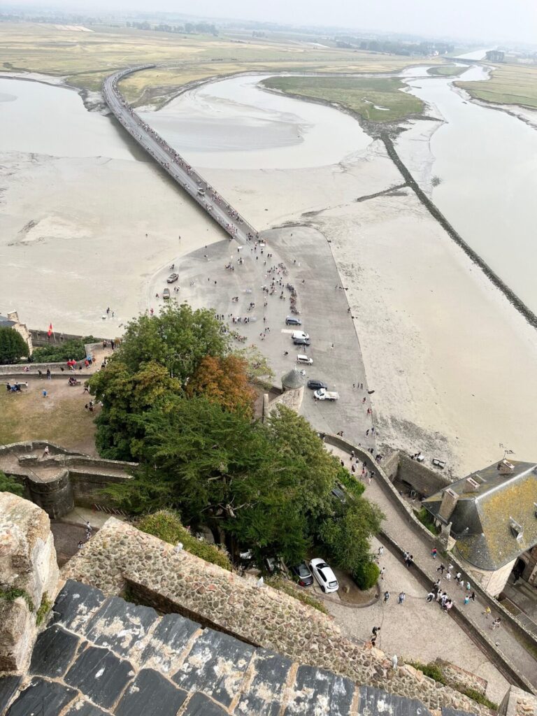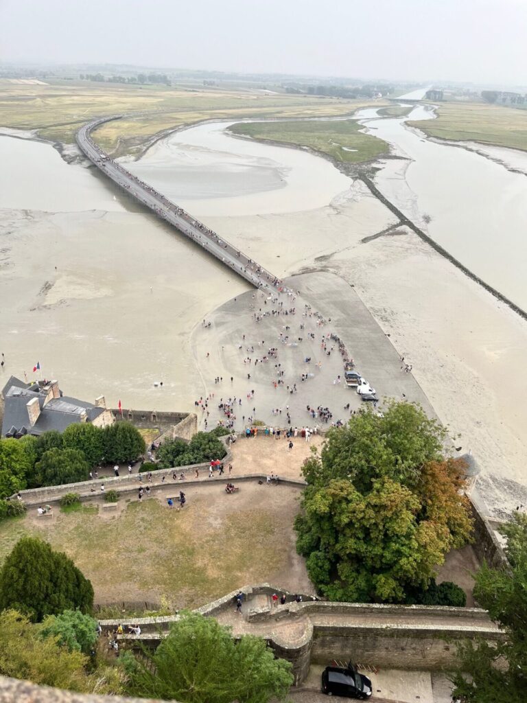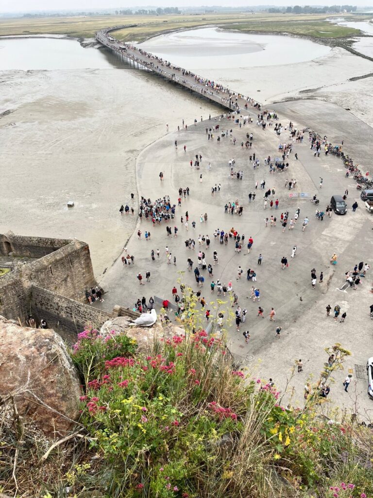 モンサンミッシェルの外にも橋の上にもたくさんの人々がいるのが分かります。