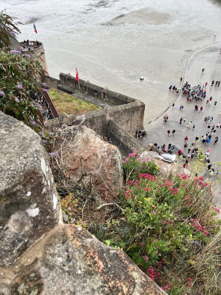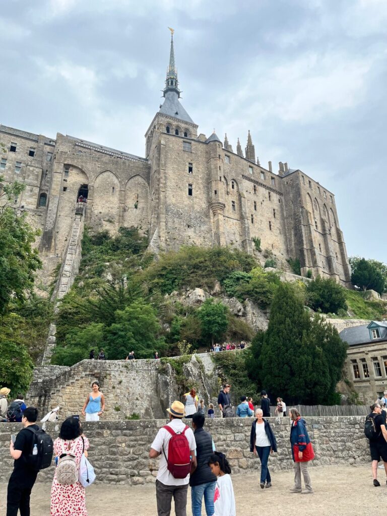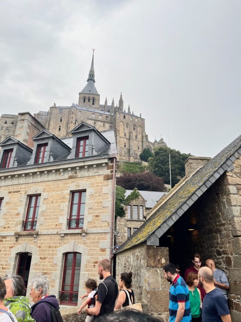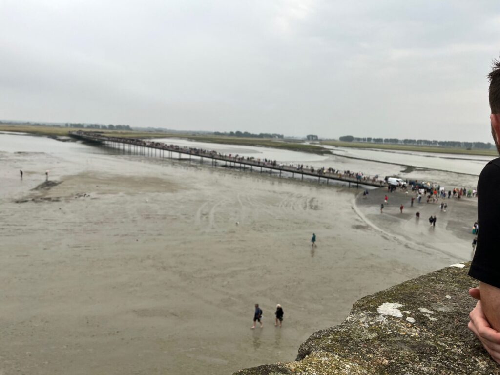モンサンミッシェルの外にも橋の上にもたくさんの人々がいるのが分かります。