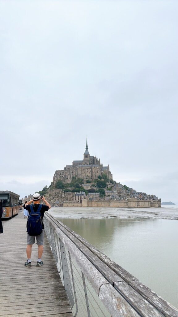 暑くも寒くもない中、モンサンミッシェルの絶景を眺めながらのとても気持ちのいいお散歩ツアーです。