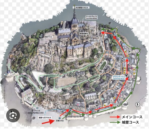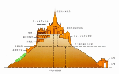 モンサンミッシェルは、周囲900mの小島の上に立つ高さ80mの修道院です。