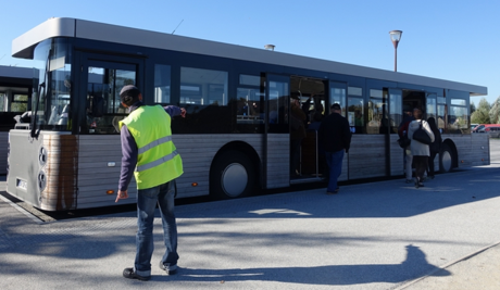 仕方ないので、P7番に戻ってウロウロしていると、見覚えのあるバスがゆっくりパーキングに入って来るではありませんか。