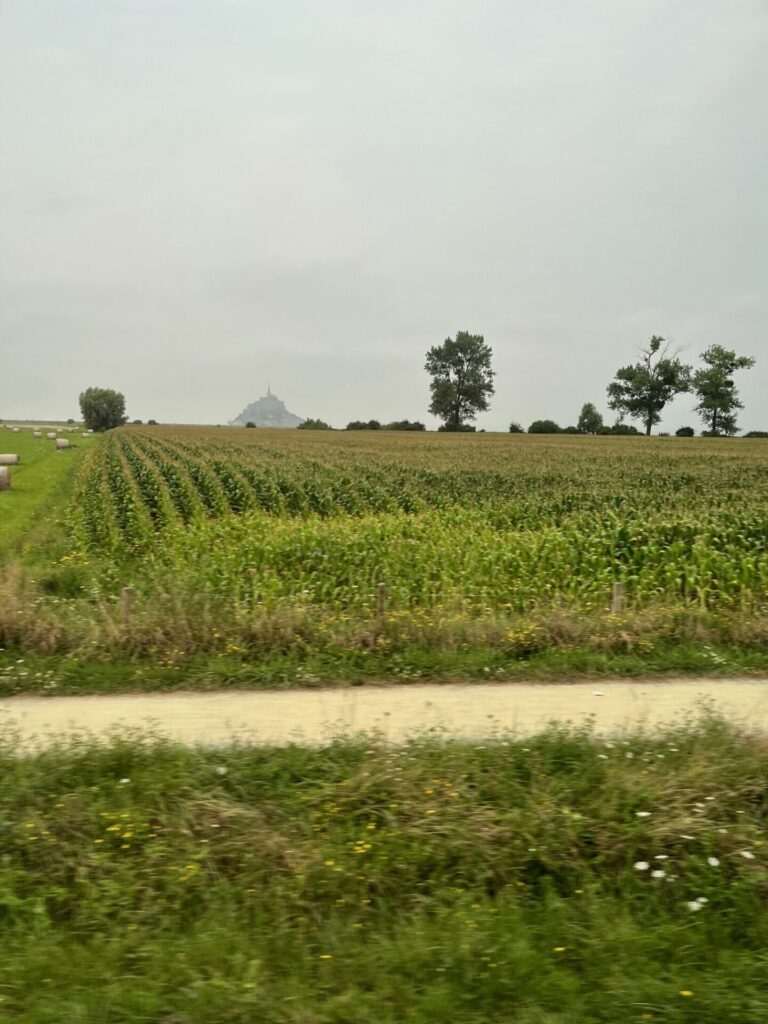 広大な畑の向こうに見えるモンサンが小さくなるたびに、寂しさが大きくなっていきます。