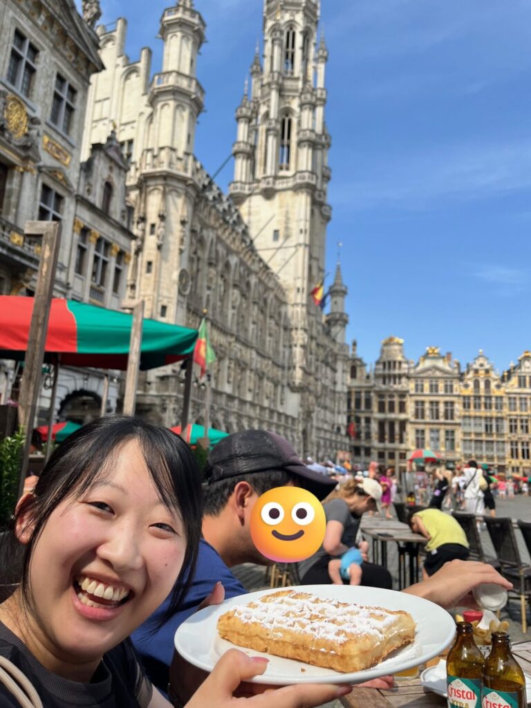 グランプラスで景色だけでなくワッフルもフリッツも堪能(たんのう)しました。