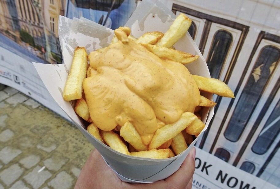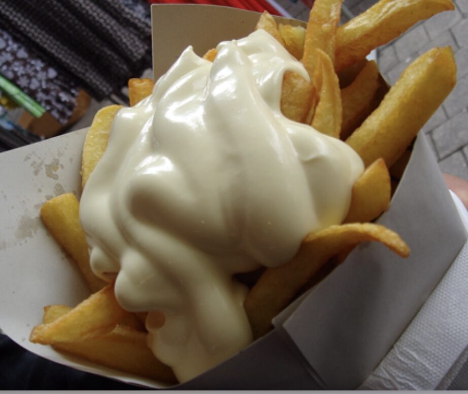 日本では、薄塩味が定番ですが、ベルギーでは、たっぷりのマヨネーズ系のソースをからめて食べるのが定番だそうです。