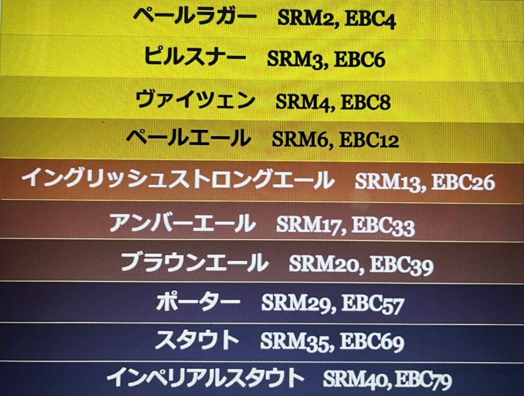 色が薄いからエールとか、黒いからラガーとかという分け方ではないことも分かります。