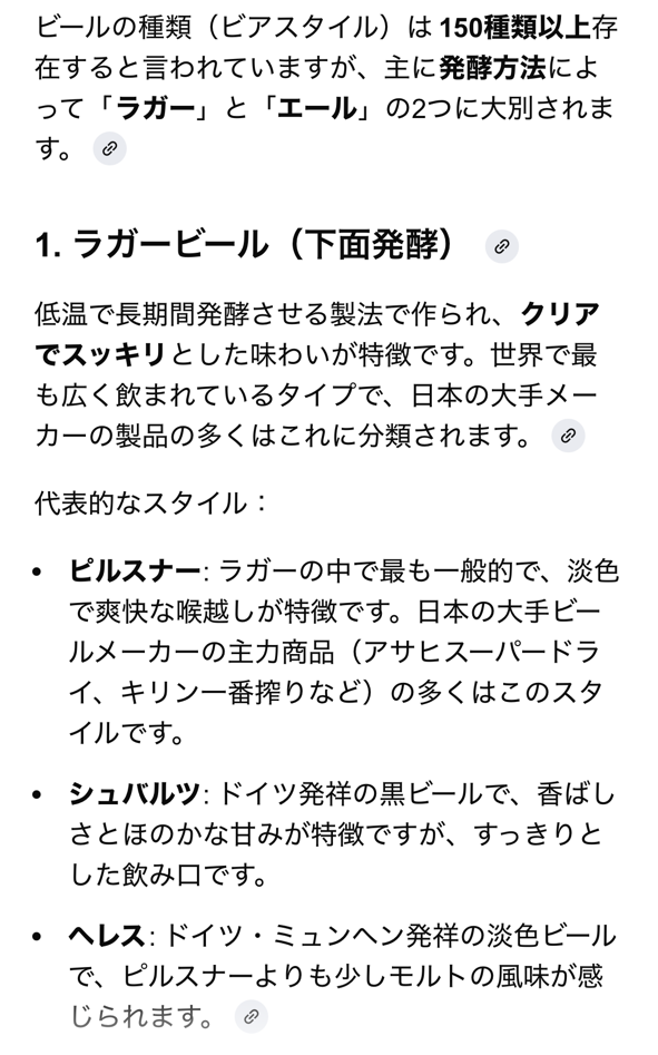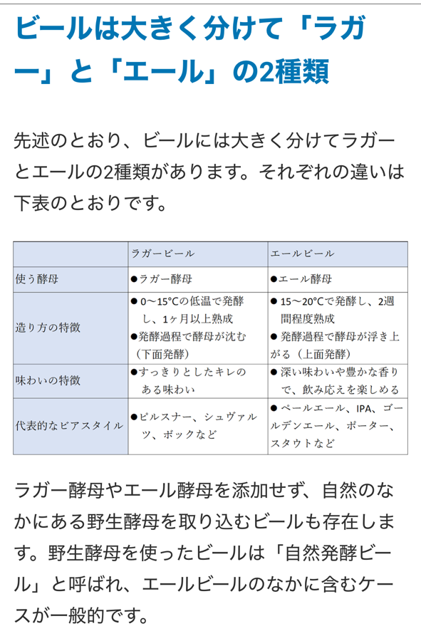 AIに問うと、大別すると「ラガー」と「エール」に分けられるのだそうです。