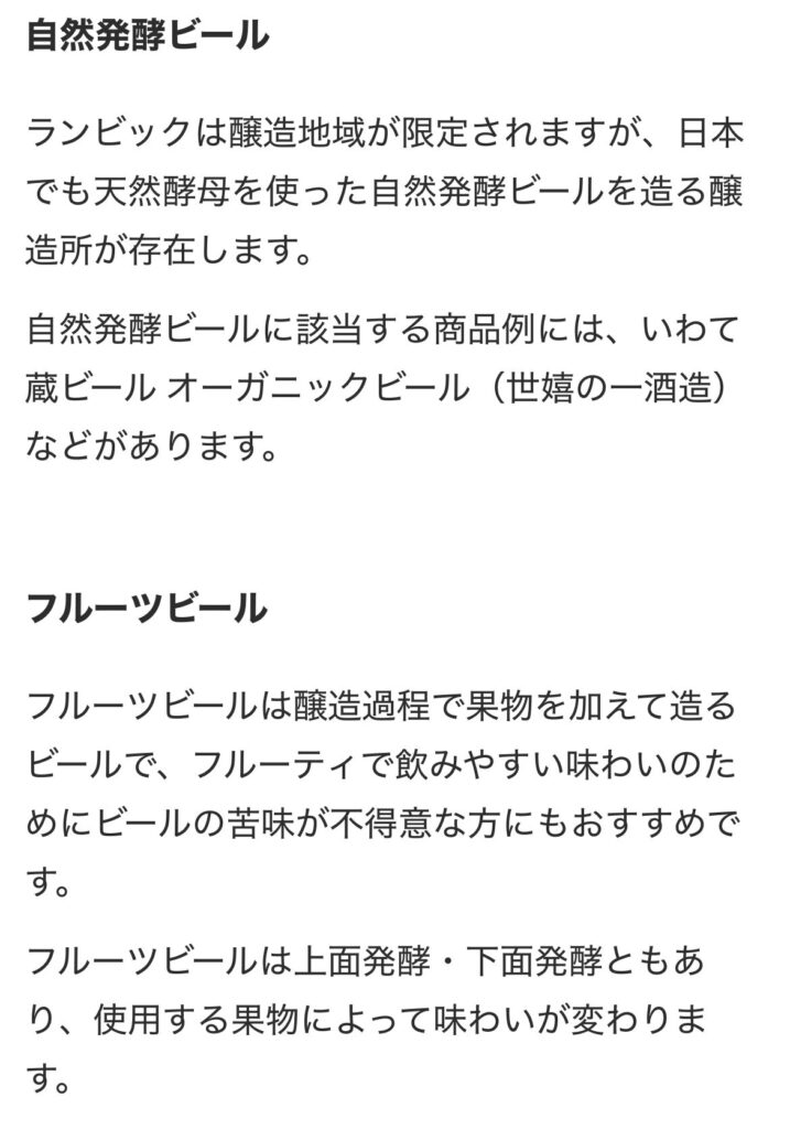それと、ラガーにもエールにも入らない「自然発酵ビール」と呼ばれる野生酵母を使ったビールもあるようです。