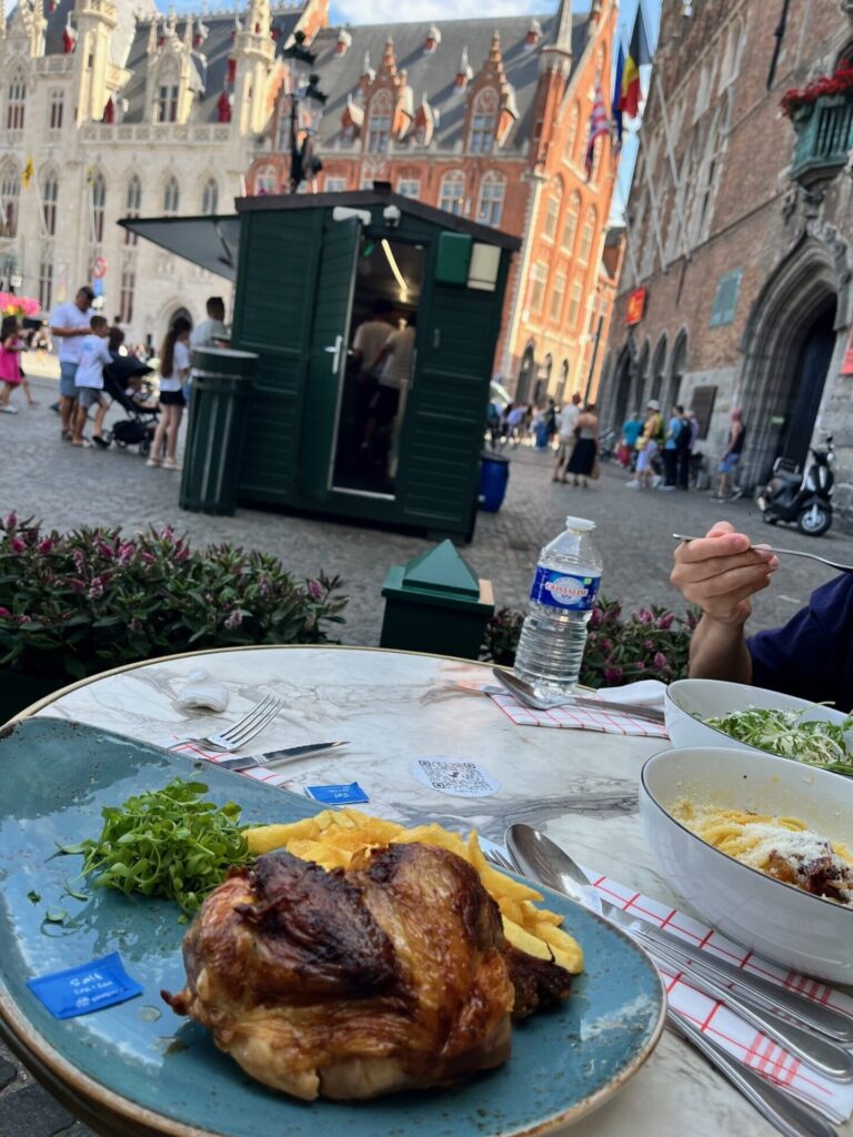 鐘楼をバックにして州庁舎やギルドハウスが一望できるお店のテラスで昼食にしました。