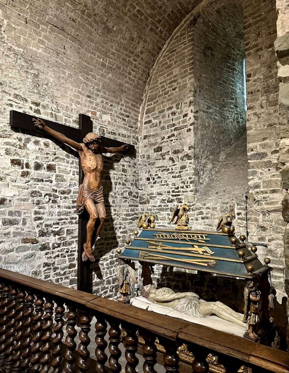 12Cに十字軍に参加したダルザスさんという方が「聖血(キリストの血)」を持ち帰り、祭壇に納めたことから「聖血大聖堂」という名前になったそうです。