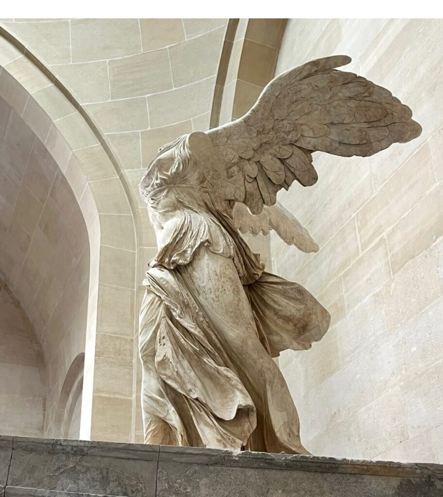 翼のはえた勝利の女神「ニケ」が空から船の舳先(へさき)へと降り立った様子を表現されていると言われています。