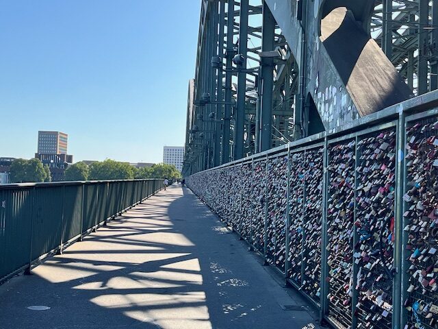 青空の元、ライン川を見ながら、「ホーエンツォレルン橋」を歩くのはとても快適です。