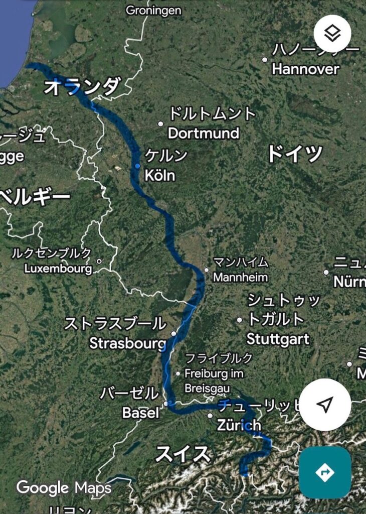 今度は、ライン川の上流に向かっています。