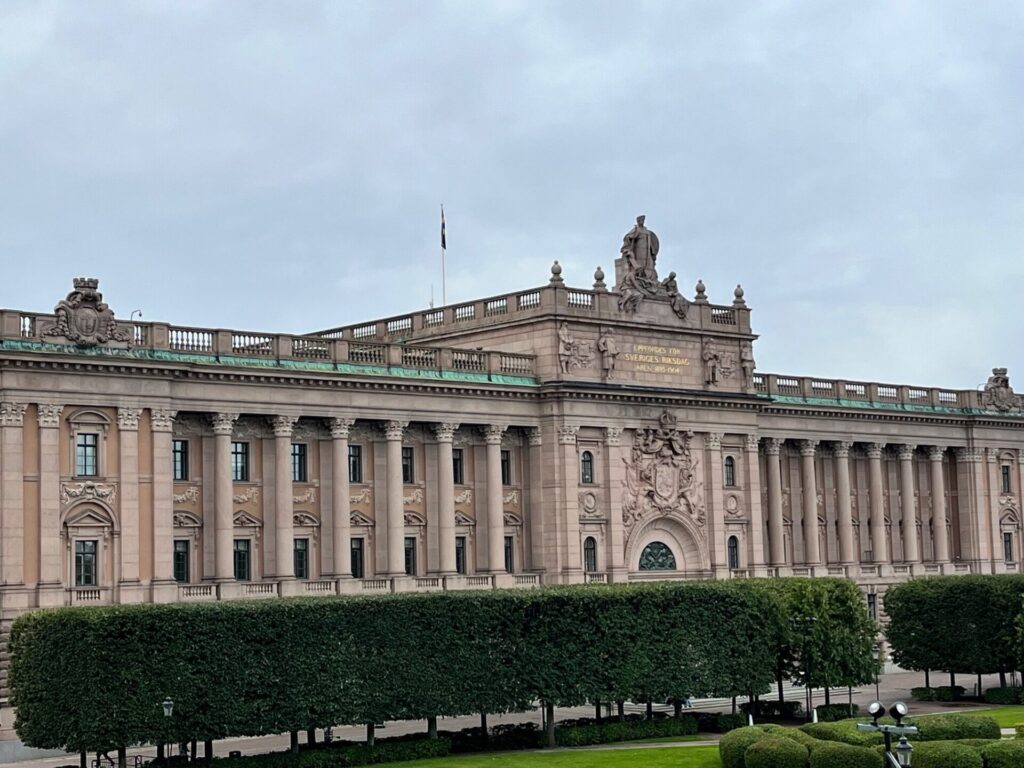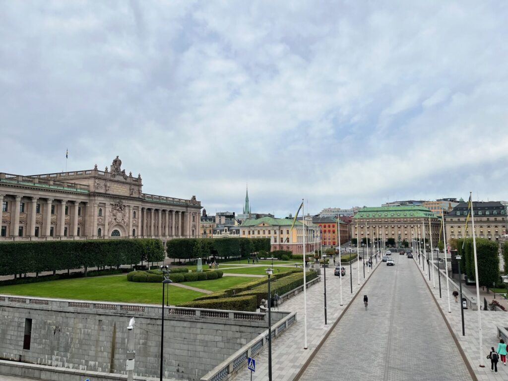 上の写真の左に見える大きな建物は、スウェーデンの国会議事堂です。
