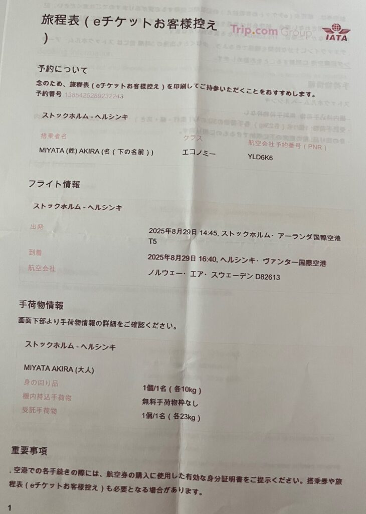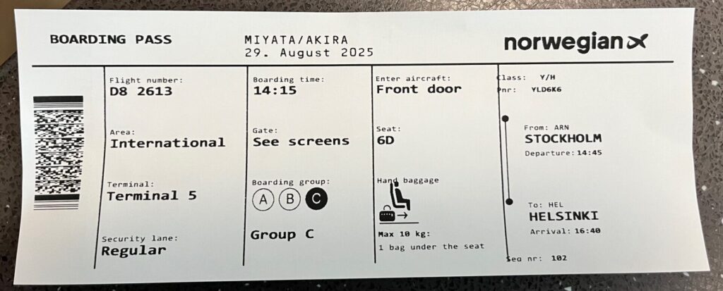 でも、空港に着いてから、「空港通行税」157SEK(約2700円)を払わなければなりません。