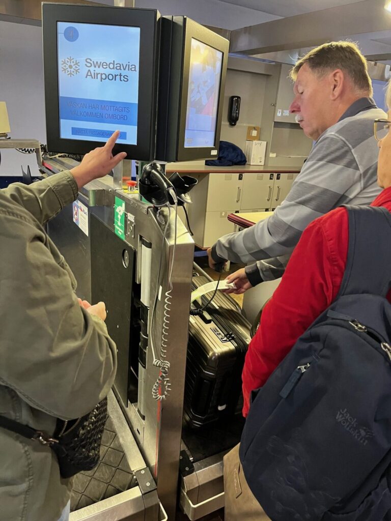 何と!ストックホルム空港では、発券だけでなく機内預け入れ荷物もセルフです。