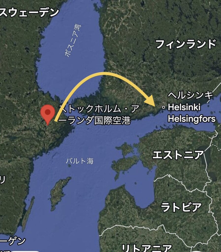 ストックホルムからヘルシンキまでは、約400kmの空旅です。