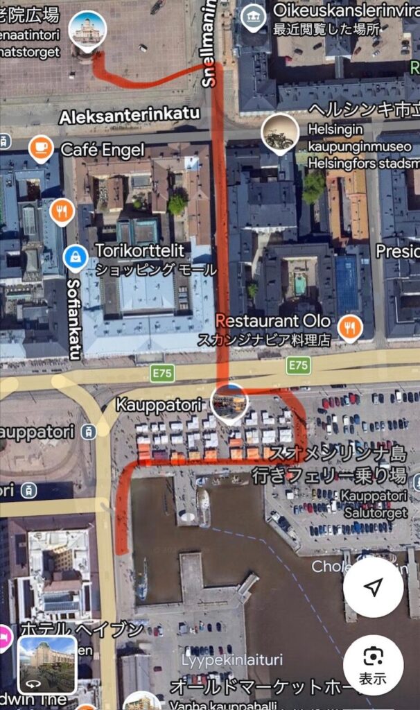 次は、地図で「Kauppatori」と書いてある「屋外マーケット」へ行ってみようと思います。