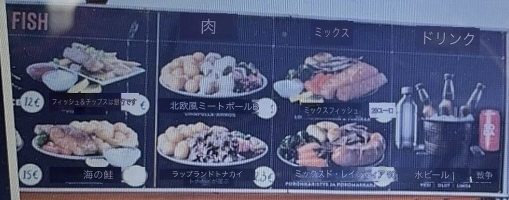 ☟このお店のメニューに翻訳アプリを当ててみました。