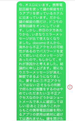 「鍵アプリの動作不良(エラーメッセージ)は、docomoさんのせいではない」