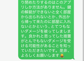 ・もし外出して戻ってきた時アプリが作動しなかったら部屋に入ることができない。