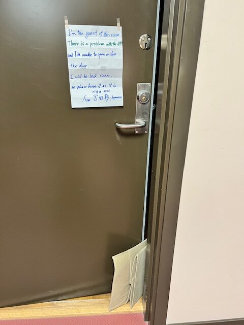 それよりも、一番の心配は、誰かが入ってきて、ドアのつっかえをとってしまうことです。