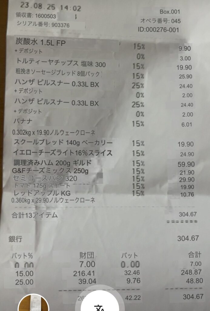 「SPAR」での買い物は150NOKで、今回は304NOKです。